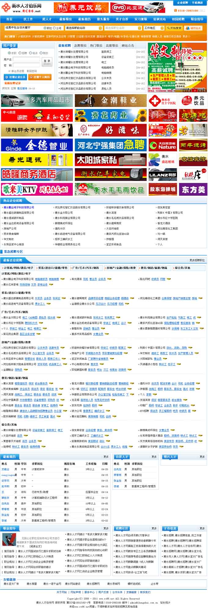 全新的界面設(shè)計(jì),“紙媒+網(wǎng)絡(luò)+現(xiàn)場(chǎng)”三位一體的人才互動(dòng)平臺(tái)--衡水人才伯樂(lè)網(wǎng)(www.rc86.net)于2011年4月10日全新上線,界時(shí)衡水亞太廣告紙媒將展開(kāi)衡水人才伯樂(lè)網(wǎng)全面的宣傳攻勢(shì),為衡水企業(yè)、商戶招聘人才提供一個(gè)全新的互動(dòng)交流平臺(tái),同時(shí)也為各界精英提供選擇就業(yè)崗位的新平臺(tái),歡迎注冊(cè)企業(yè)用戶,歡迎上傳個(gè)人簡(jiǎn)歷!
